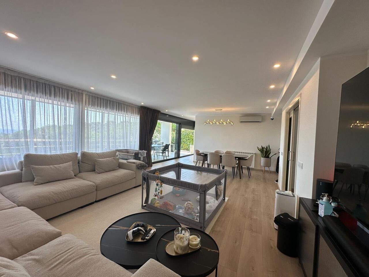 Para los amantes del bienestar, la propiedad incluye una zona de spa con gimnasio, sauna interior y sauna exterior, perfectamente ubicada junto a la piscina. Además, cuenta con una cocina de verano con barbacoa, ideal para celebraciones al aire libre.